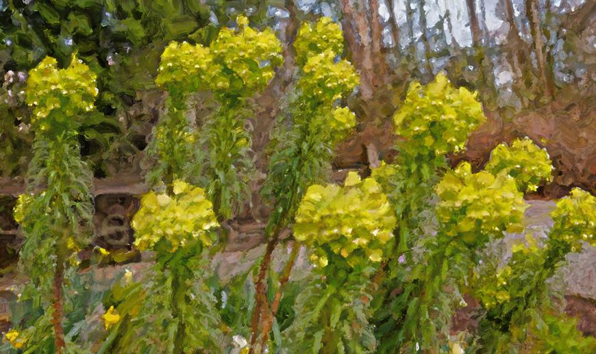 Early Spring brings out the first flowers of the season, this stand of Mediterranean SPurge was just starting to present its full array of splendor