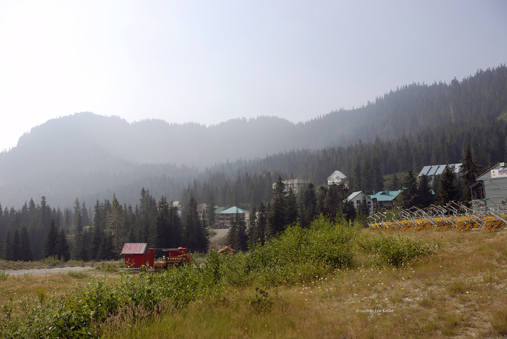 Back in July Ralph indicated that he would be able to join me for the adventure mid-week in August so when the day arrived he came to my house and we set off for the summit at 8:30. The drive to The Hemlock Valley resort area should have taken around two hours, but as we approached Deroche we were stopped by a train at the crossing. Normally uneventful but it stopped not much past crossing the road. It sat there for a while then backed up a bit while another train sailed past on the second track. Then it moved forward a back a few times before finally backing up out of the way. The whole process took upwards of 15 minutes! Quite annoying. From there the rest of the drive went quickly.