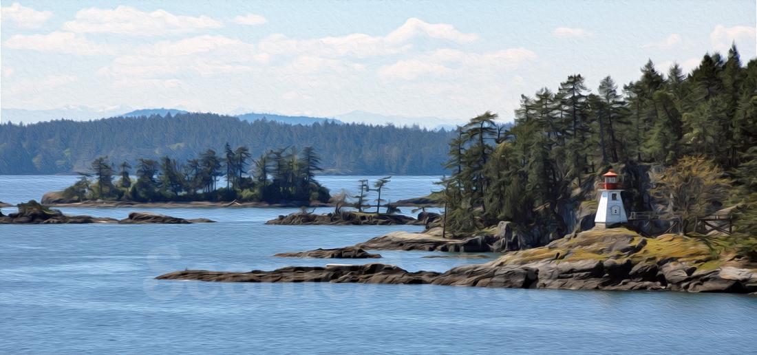 This lovely view of the lighthouse and small islets on the southern tip of Prevost Island can be seen from the ferry between Tsawwassen and Swartz Bay. This scene was captured on April 30, 2019.