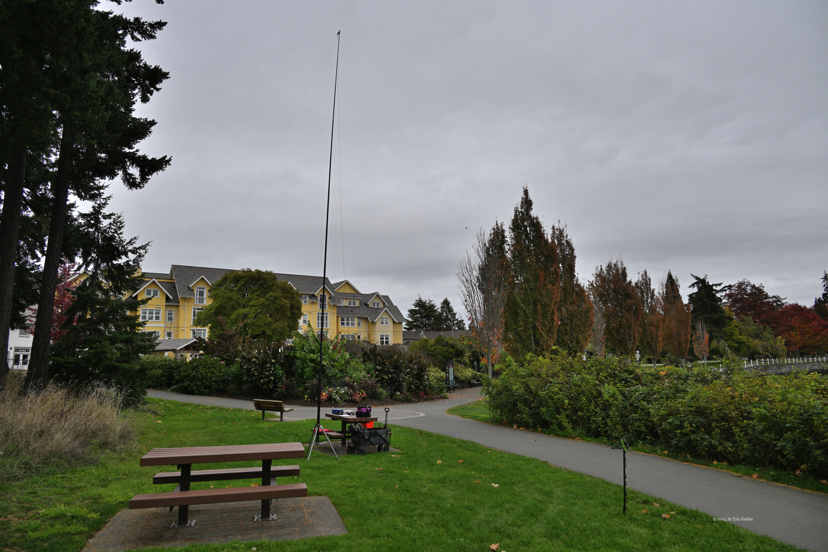 The area is part of a longer walkway that travels the length of the inlet and offers many views of the water and various points of interest. This location was added for the historic school which claims to be the oldest still in use in western Canada. The park offers some lovely gardens, a kids’ play area, and open grass with picnic tables. After walking through the park gathering photos, I decided on a table to use for my activation. I returned to the car, loaded my gear into the cart and returned to the table.