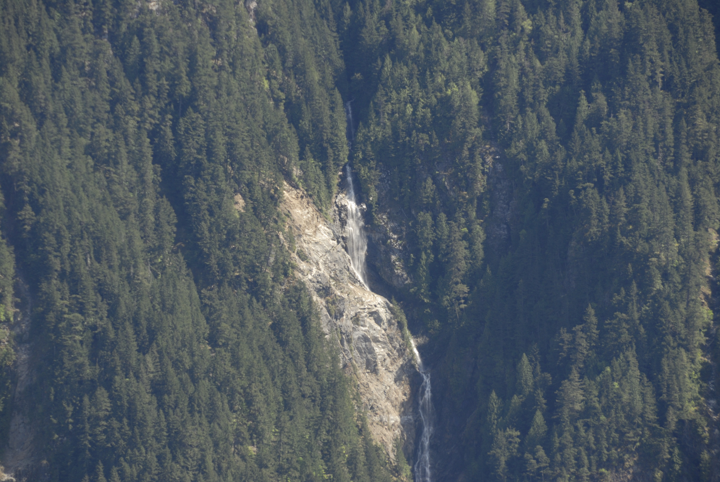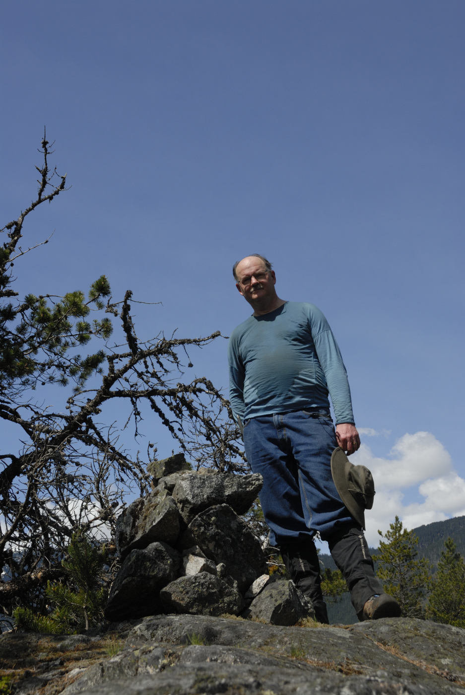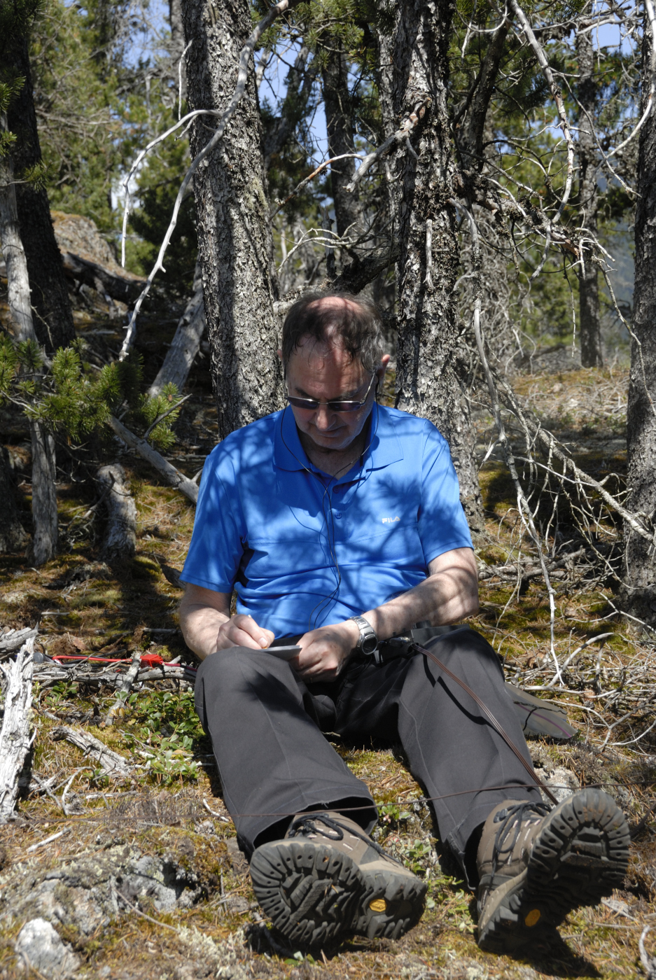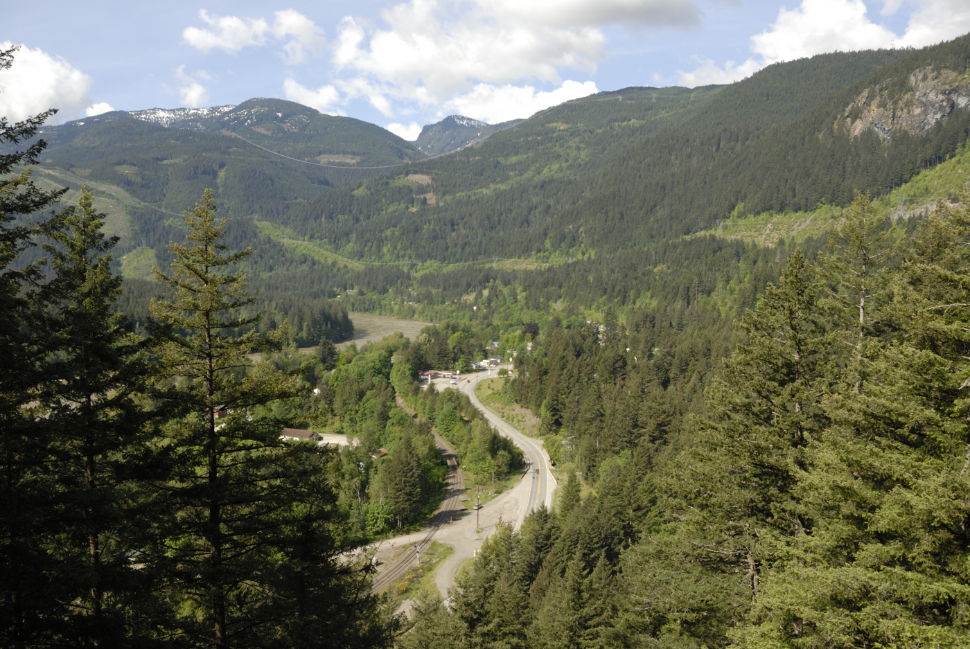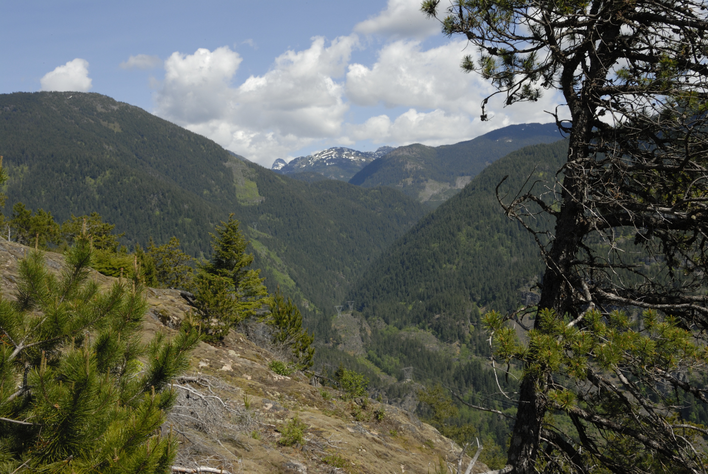 Meanwhile I assembled my 2m yagi and latched it to a tree behind Ralph. I then plugged the 2m amplifier I borrowed from Ralph into his lithium battery and I started calling. I kept that up for over a half hour but got no response. I tried a few frequencies and the only response I got was the automated one from the Hope repeater. Well, I guess I wasn’t making a contact, fortunately Ralph did and so the summit was activated again this year. I then grabbed my camera and gathered a few photos from the summit. The Fraser Canyon is very narrow here but affords a few lovely sights even if they are limited in direction.
