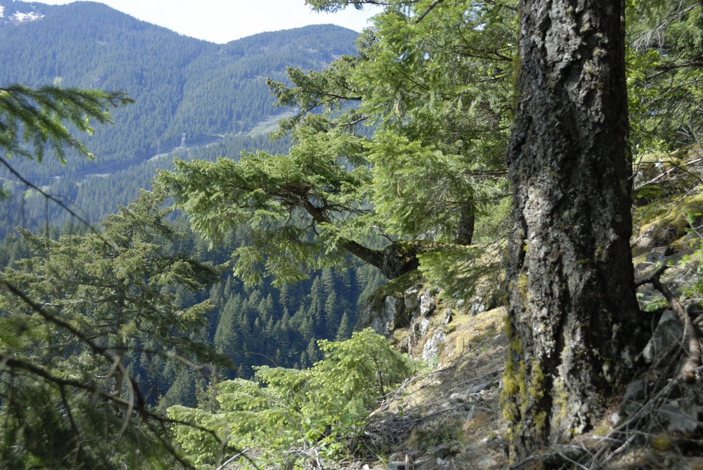 Today we were driving in style, in my wife’s SUV as we didn’t need to leave the pavement to start at the trailhead. So the drive went smoothly and we were pulling off the road in Yale a bit before 10am. A few prep tasks and we locked up the car and started along the highway for the beginning of Lynky Trail. The day wasn’t too hot yet so it was a good time to get on to the slope and start up this very steep trail. It was dry and that made for an easy time picking our steps as we travelled the dozens of switchbacks up this trail, one book counts them at 47 but I think there are actually more.