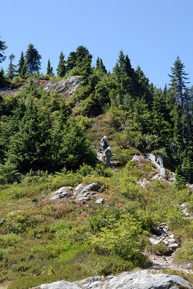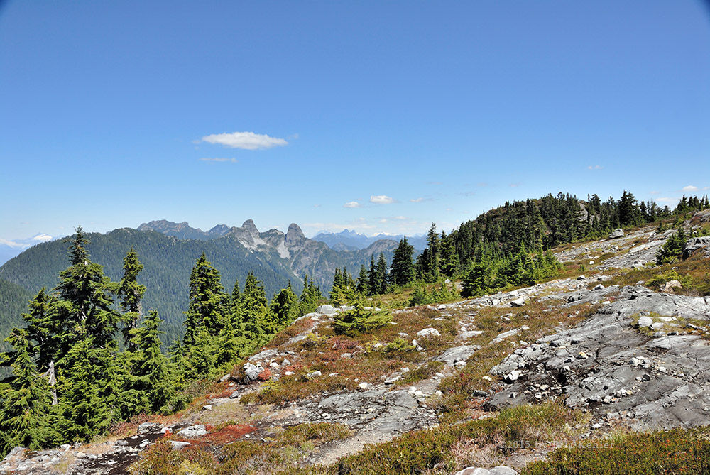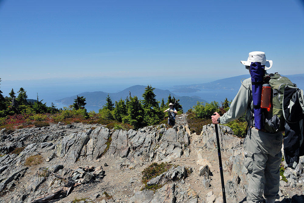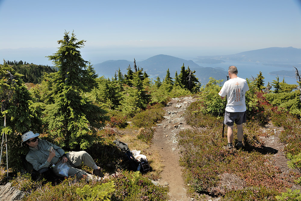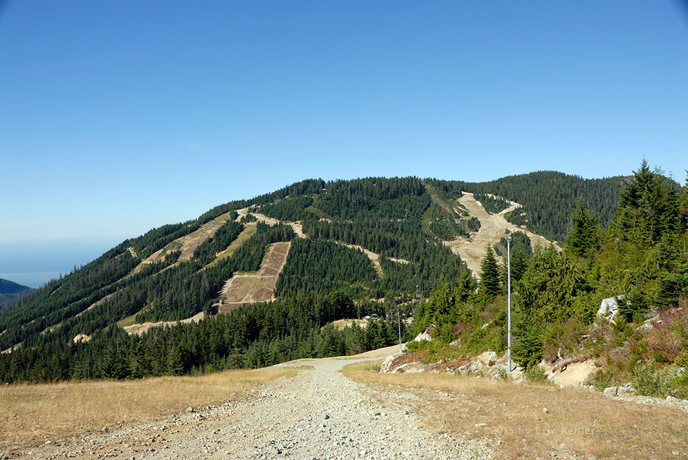 My last visit to Strachan was back in September 2009 and I was long overdue for a return visit. Last time Ethan and I hiked the summit by following the long route which starts by following the Baden-Powel trail towards Hollyburn Mountain there the route to the summit splits off and backtracks at a higher elevation before starting to climb in earnest. It is a long hike through the woods and adds a couple of kilometers for little elevation gain. It is a pleasant hike and fairly well shaded but today I was joined by some friends from my radio club and our goal was to do some radio communications from the summit; we wanted a shorter hike so we could spend more time at the summit. So we decided we would hike up the service road which is a bit steeper and not as scenic but is the shortest route to the summit.
