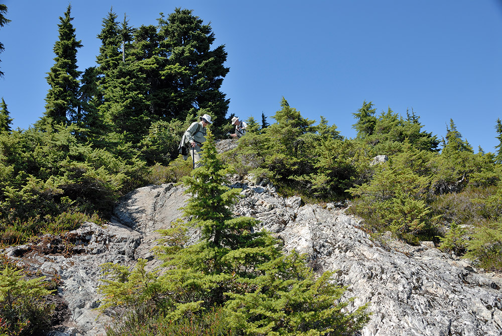 We geared up and began the hike up the service road. The first segment went smoothly but the sun was definitely beating us down and the heat was rapidly climbing as the day wore on to noon. There were few places with shade on the road but when we did come across a patch we stopped for a needed break from the heat. Even with the road being the short way, the heat slowed us down and it took almost 3 hours to reach the south summit. Once on the ridge we found a shaded rock and had a longer rest to regain some strength for the final assault of the northern summit.