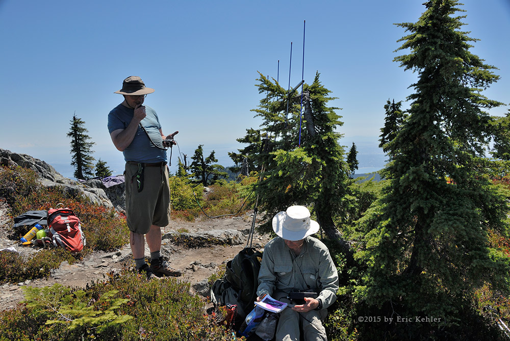 Once ‘rested’ Ralph started to set up his Buddipole based wire dipole antenna while I assembled Brett’s portable 2m Yagi. It’s a very nice portable antenna in a very convenient canvas holder, I think it would do well for me in the back-country. It would stand up to the banging around much better than my current one. As soon as the Yagi was assembled and hung on a branch, stations were lined up waiting to make a contact. I had 5 contacts completed before Ralph finished setting up his antenna! Brett followed with 4 more of his own.