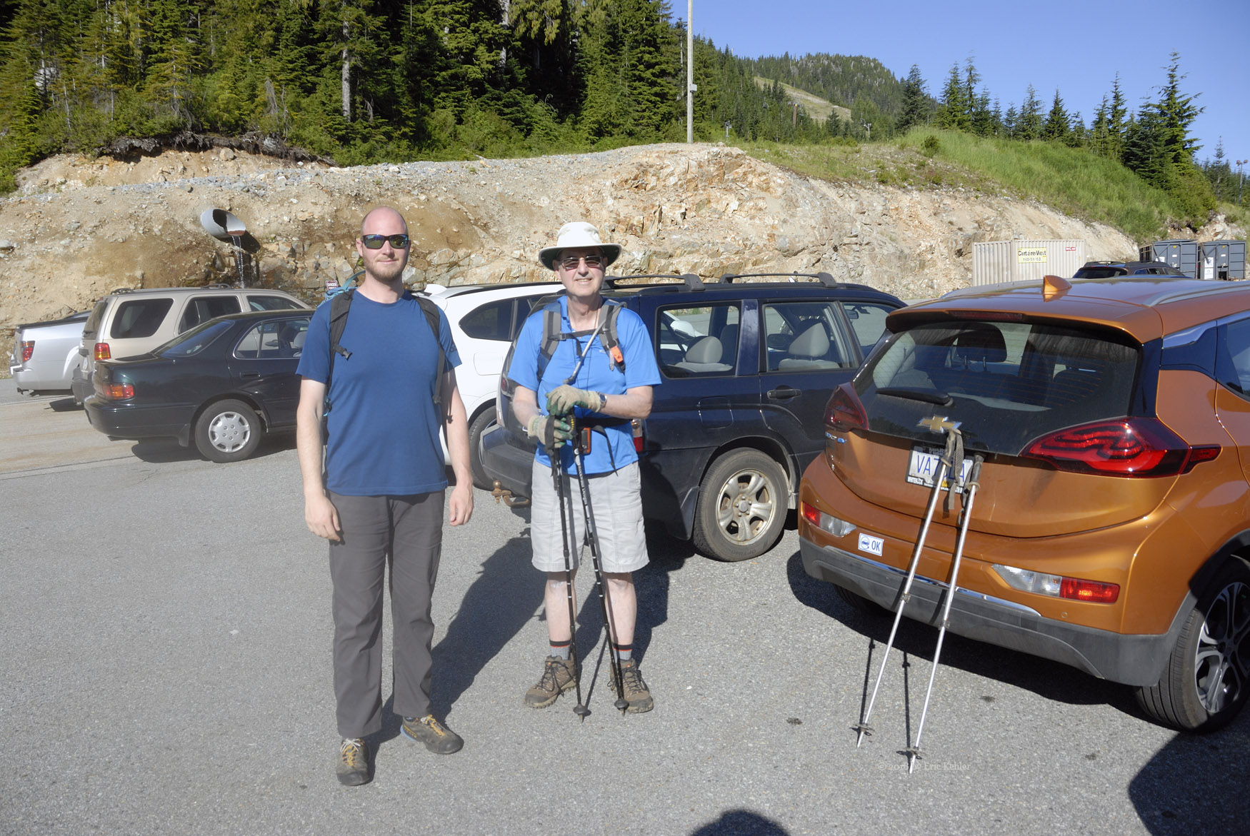 So our adventure begins with Ralph arriving at my house at 7am and us loading into my wife’s electric car for the journey to the trailhead. We met John at the start of the Cypress bowl road and drove up the slope together. We were early enough to find a close parking spot and so we got settled in and our gear on for the hike. Having John along made life on the trail easy as he has hiked the summit before. He took us on a slightly longer route but one that is more scenic and interesting.