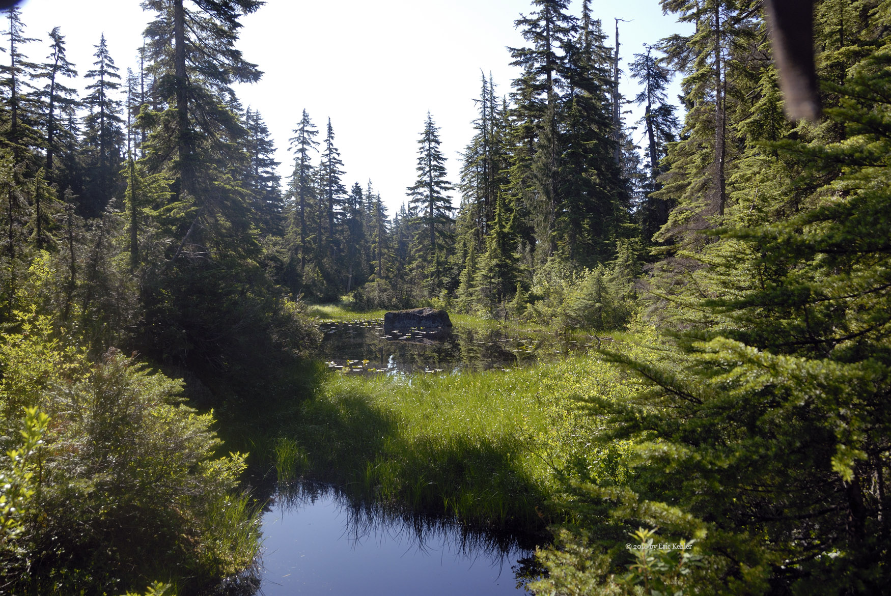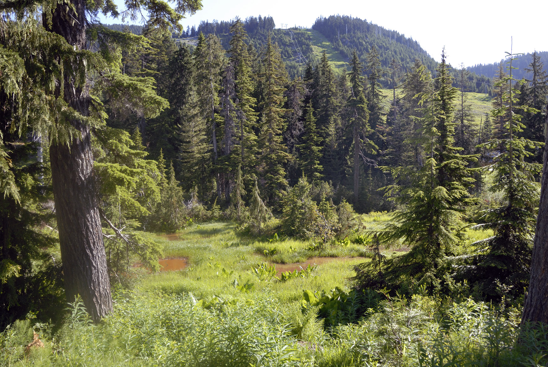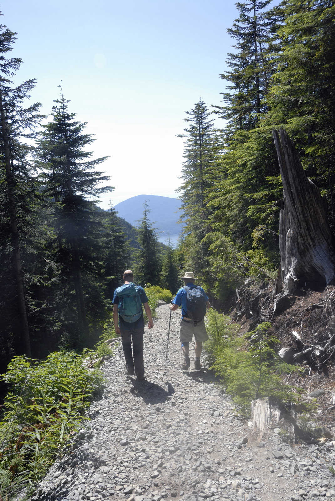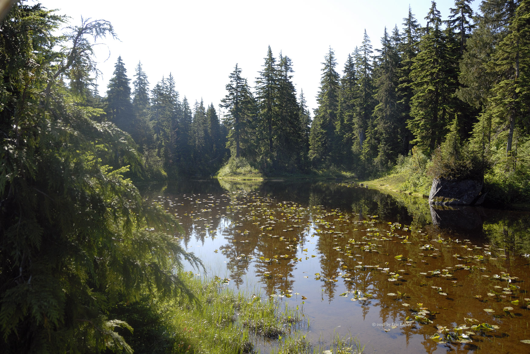The first section of trail is through an old growth forest and some pleasant lily filled lakes. The trail then ascends up the lower slope of Mount Strachan as it makes its way north and to the Howe Sound Crest Trail. The early section of the trail in very well maintained with a solid gravel bed to walk on. Even though it was steep in places it made for a quick walk to the ridge. Just past half way point the developed section of trail stops and one continues on the original one. Now it is still a decent trail but one has to now place their feet carefully due to the many roots growing across the trail. This section of the hike was much slower and tiring.