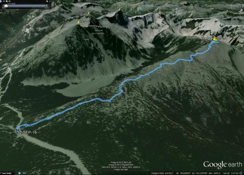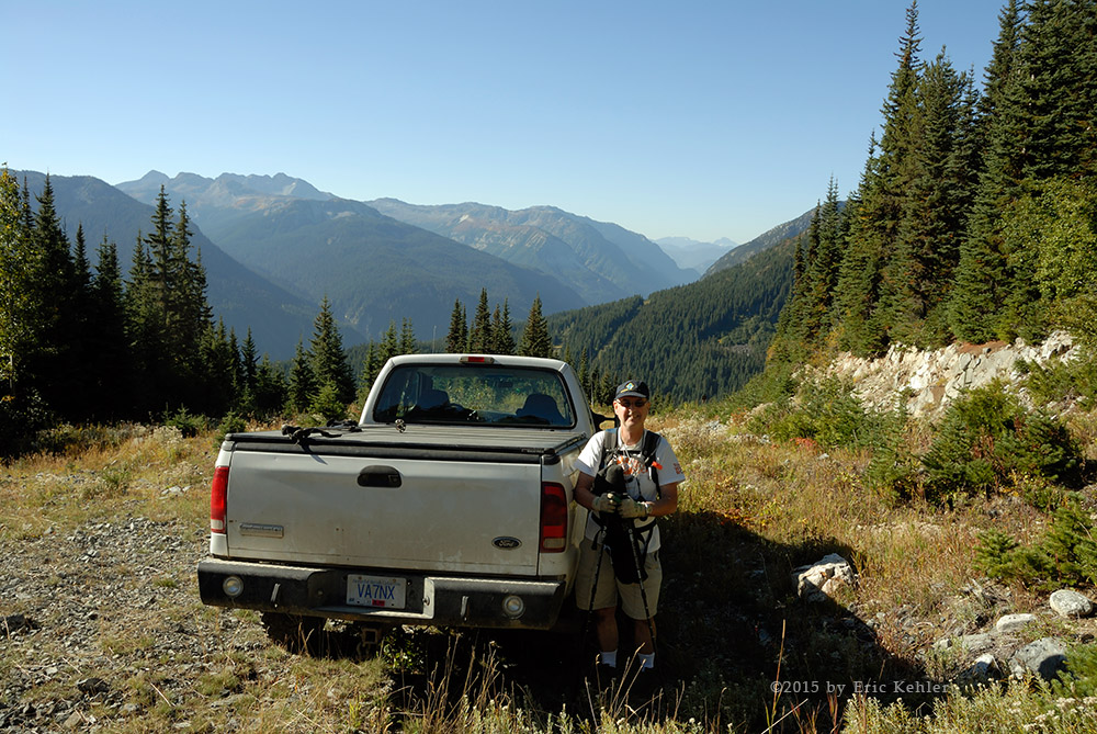 As per the normal sequence of those drug addicted members of society our first stop was to the local drug dispensary for a fresh cup of the hot beverage that keeps society moving along in a generally functional state. Once loaded up we continued along to the next stop to feed the truck before getting onto the highway for a fast trip to Hope and then the Summit of the Coquihalla. It went smoothly except for a short slow patch near the end of our drive for road construction. The only excitement along the trip to this point was when Ralph was reviewing the computer to find our exit point off the highway – he tried to zoom in on the location but managed to terminate the mapping software while we were barreling down the road at 120km and rapidly approaching our exit. We now had to find the exit the hard way – with our memory and eyes. Fortunately we found the side road in time to exit and once off the highway we got the software restarted so we could follow the right backroads to the trail head.