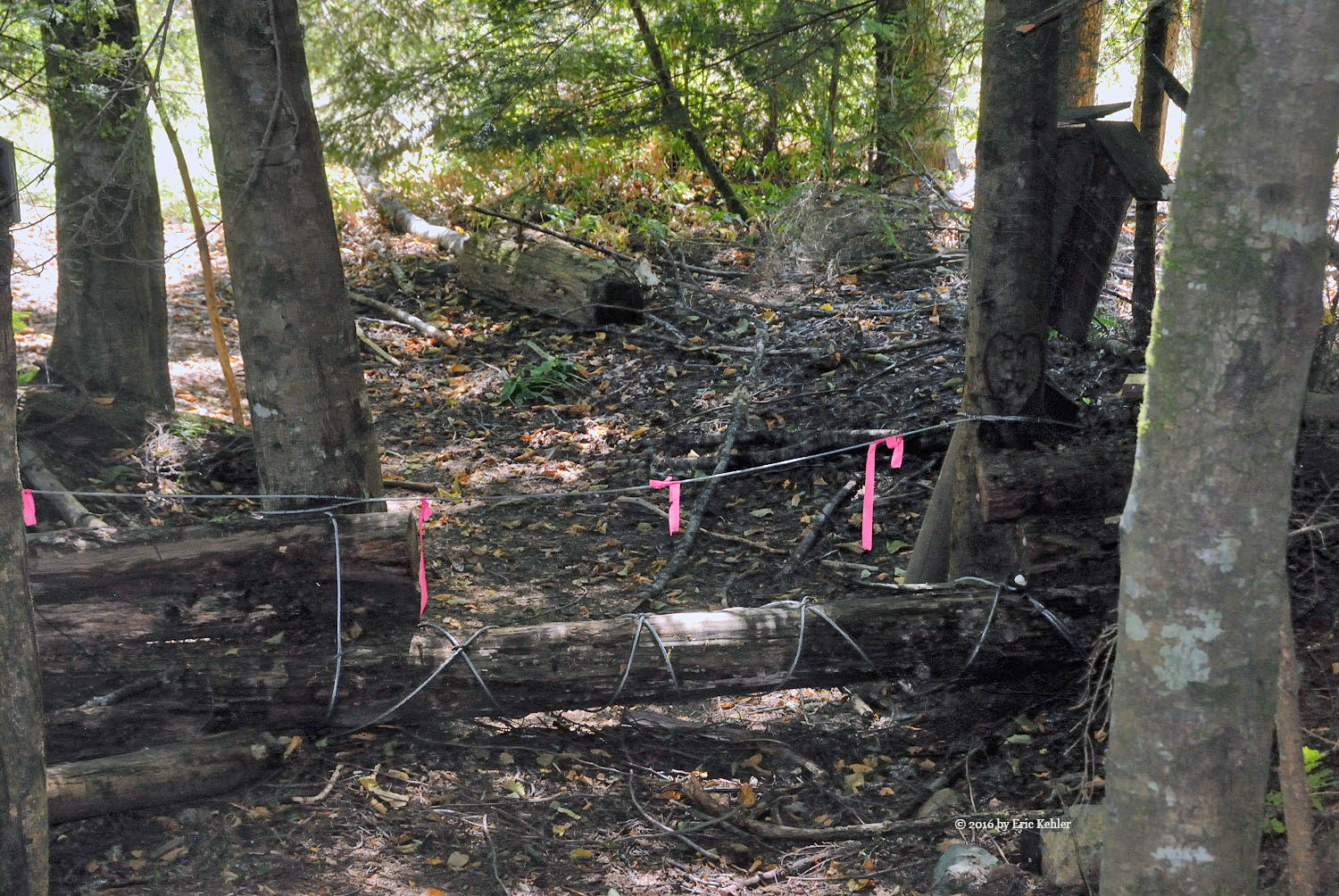 The forestry road was undergoing improvement and so there were a lot of cleared logs alongside the road and it had a much rougher and looser surface due to the work. It was no problem for our truck but poor Bruce was in the back seat getting some serious bounces. We followed the mainline to the designated fork and turned up it for a short distance and reached the marked spot for the start of the trail. The road was seriously dug out here, designed to stop all motorized vehicles. They did a very thorough job, even a motor bike would have second thoughts of continuing!