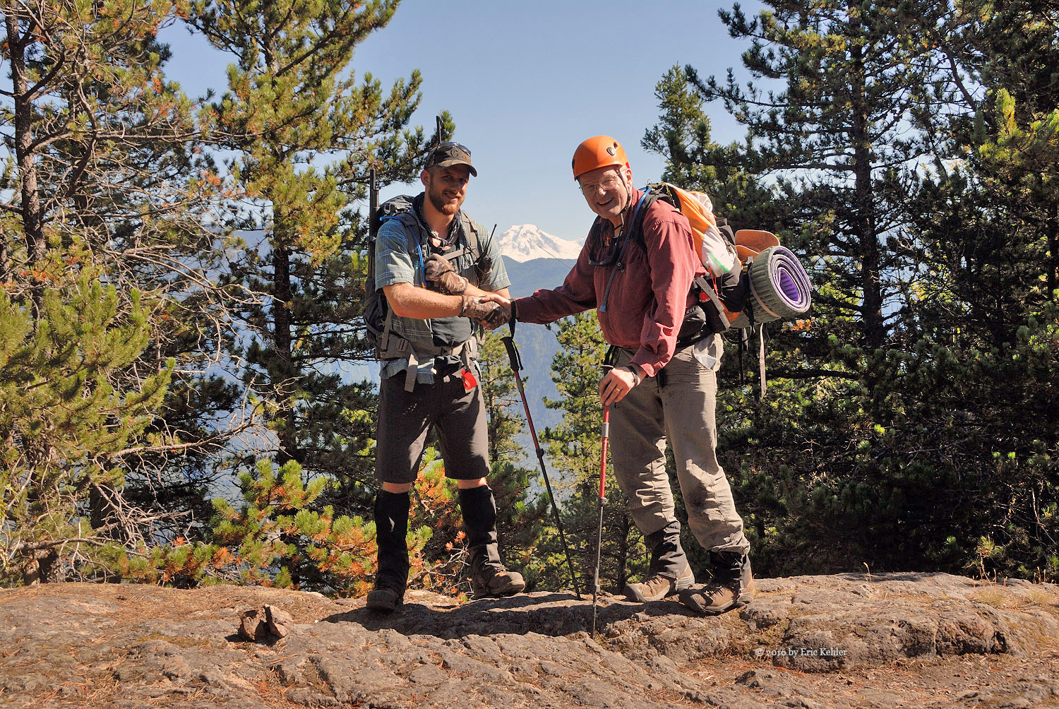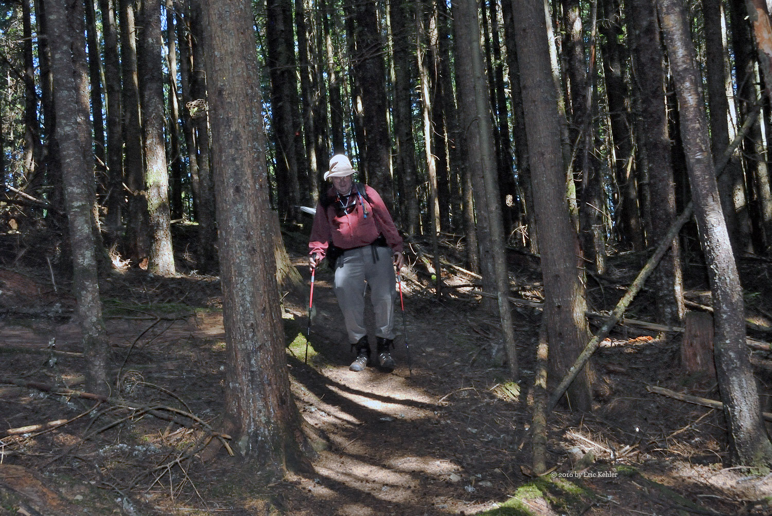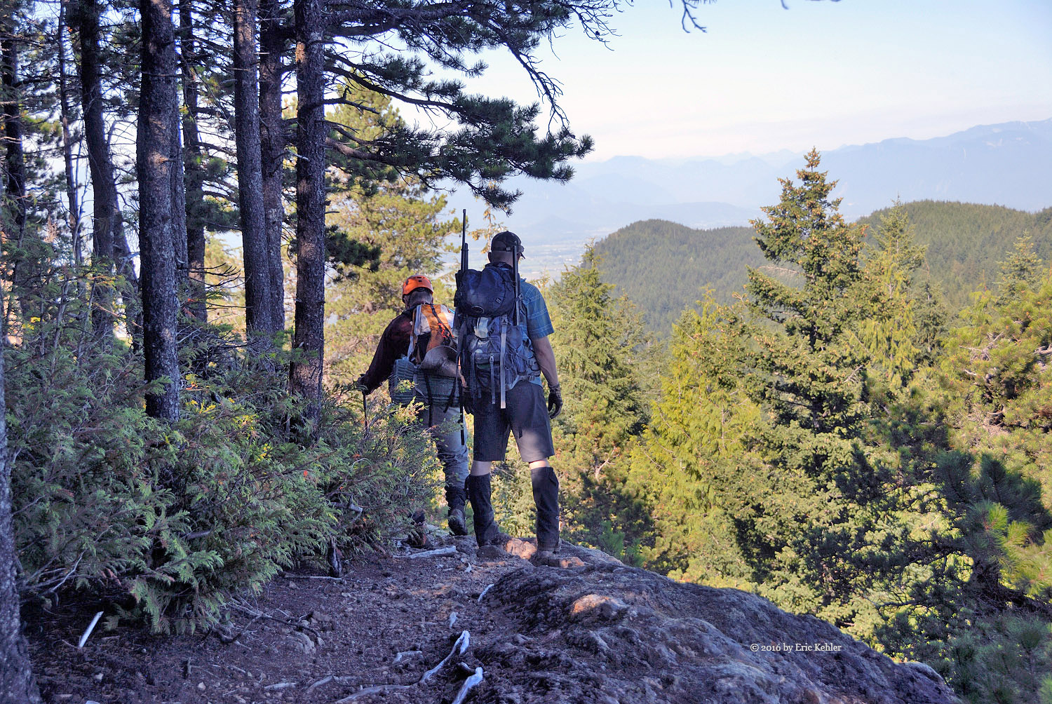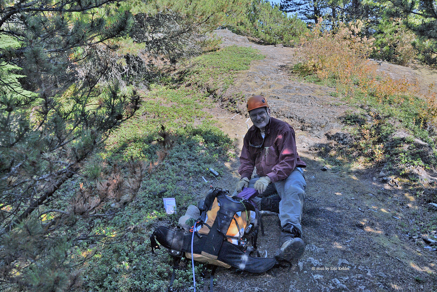 Well we were eventually done with radio and ready for the trek back down. The descent had a few challenges, Bruce had a bit of a stumble on the rope section but Geoff was able to guide his foot placement from beneath, so that didn’t hold us back too much. As we neared the lake Geoff spotted some fresh bear scat to the side of the trail, so we stayed extra aware of any sounds along the trail for the next section. We never did see any bears or other hikers for that matter. It struck us as odd that no one else was out here today. We made much better time on the way back and before long we were back to the north view point gathering a few more photos before the final walk along the trail.