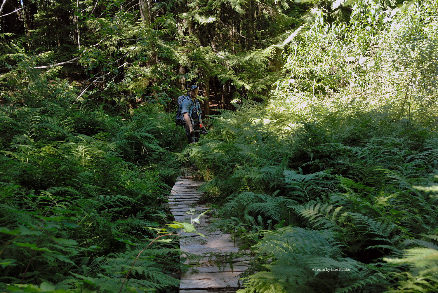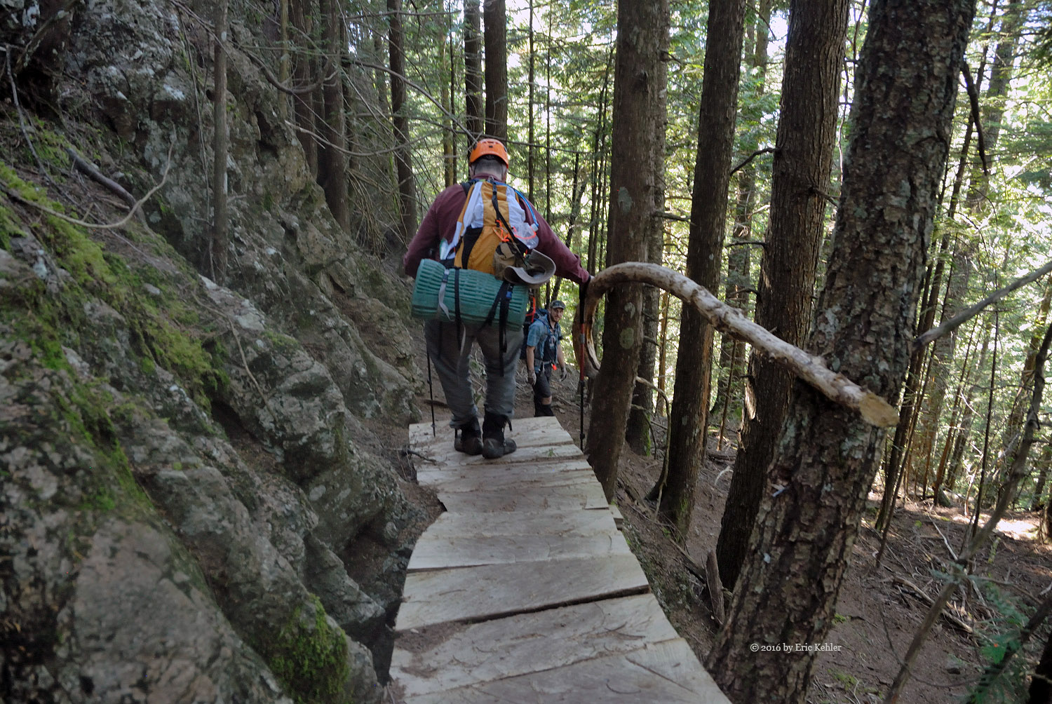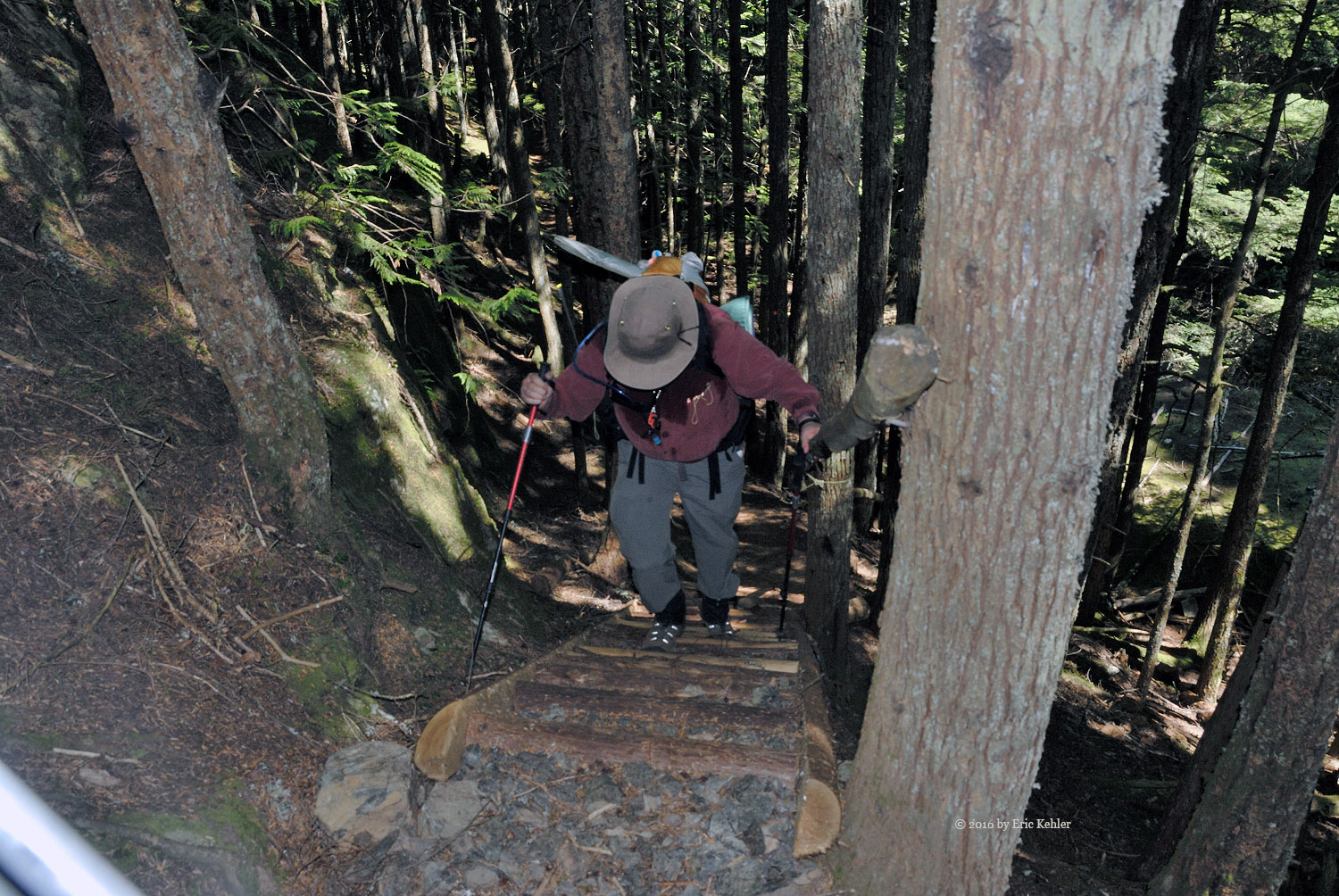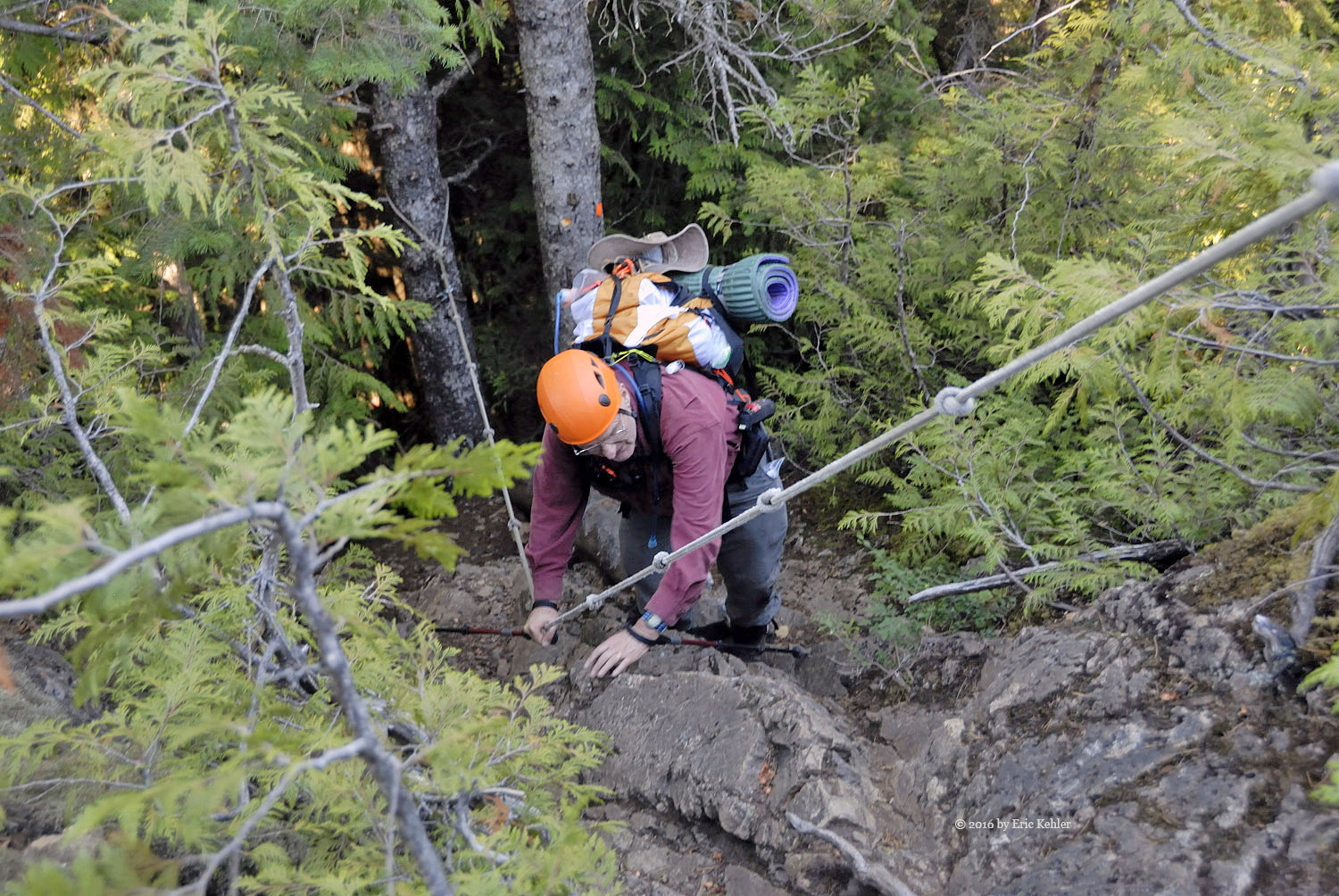 Well we were eventually done with radio and ready for the trek back down. The descent had a few challenges, Bruce had a bit of a stumble on the rope section but Geoff was able to guide his foot placement from beneath, so that didn’t hold us back too much. As we neared the lake Geoff spotted some fresh bear scat to the side of the trail, so we stayed extra aware of any sounds along the trail for the next section. We never did see any bears or other hikers for that matter. It struck us as odd that no one else was out here today. We made much better time on the way back and before long we were back to the north view point gathering a few more photos before the final walk along the trail.