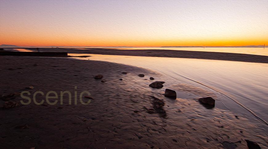 The subtle glow in the southern sky contrasting against the dark sand and tinted water caught my eye in this photo. Crescent Beach offers wonderful subdued sunsets in the winter, this one was discovered on February 11, 2004.